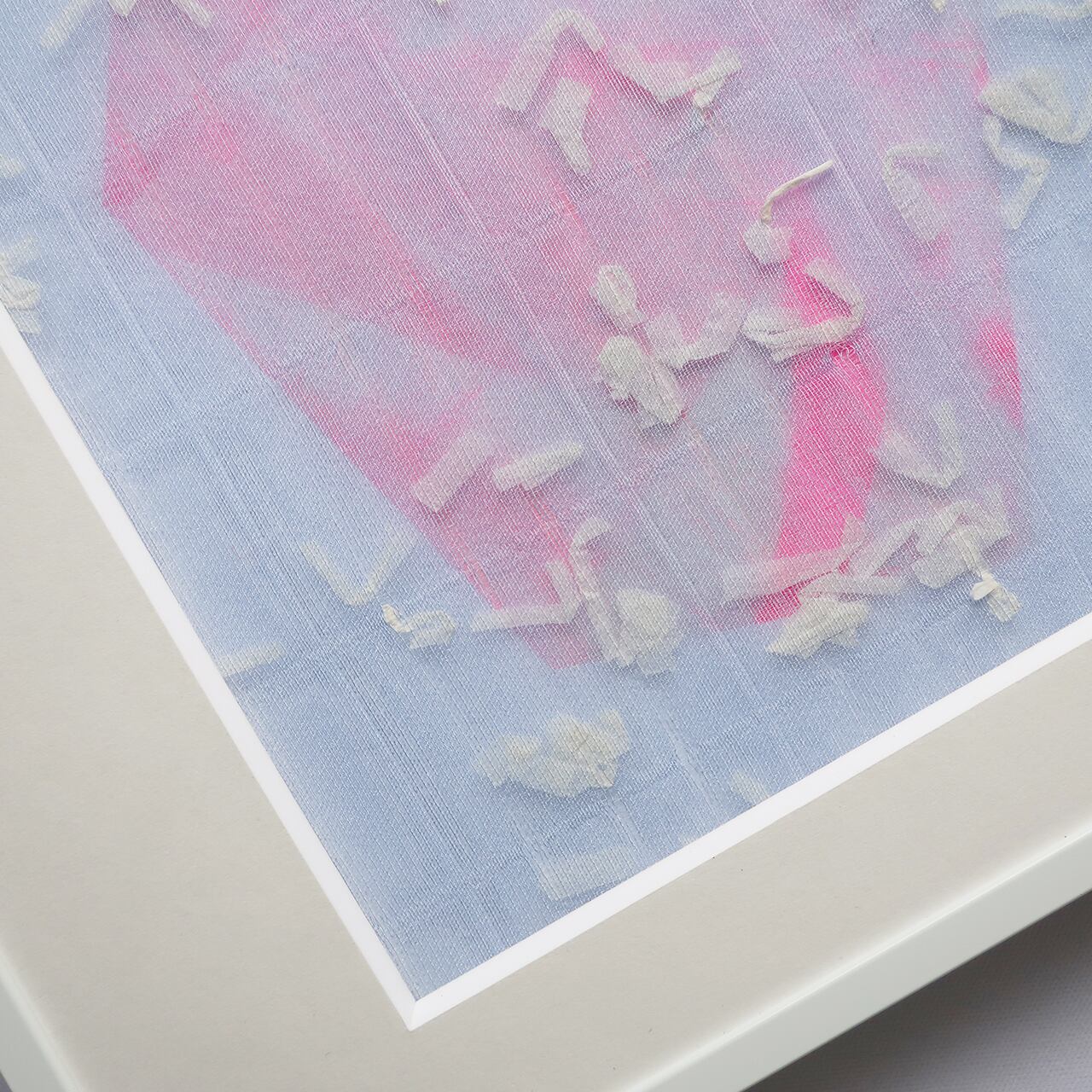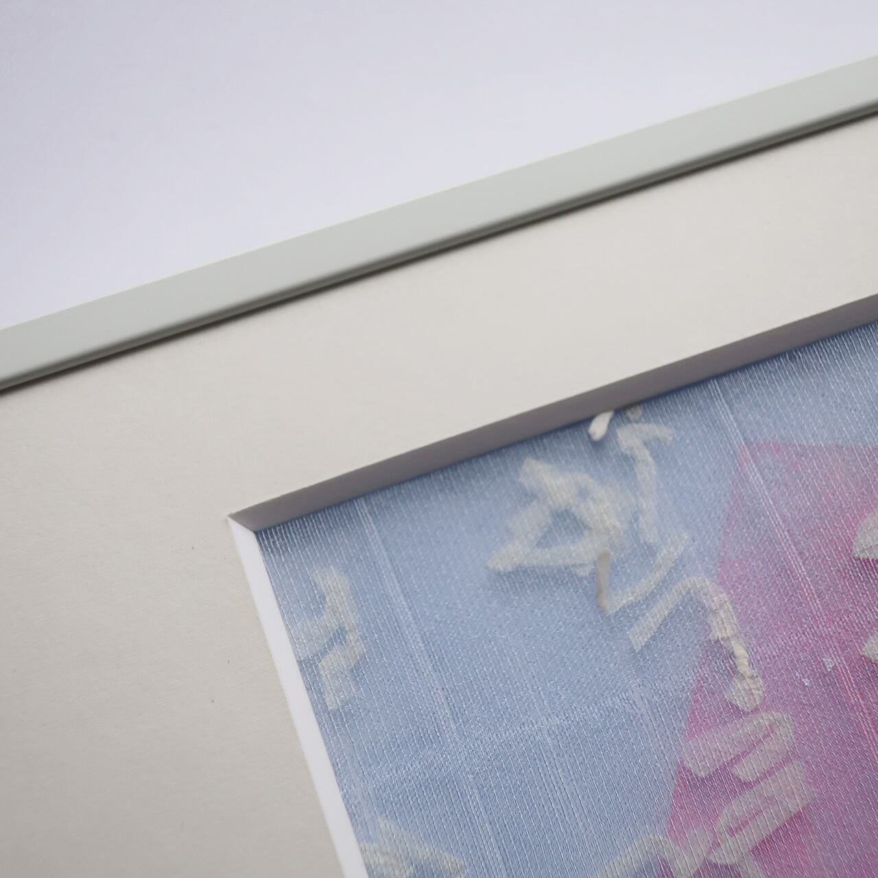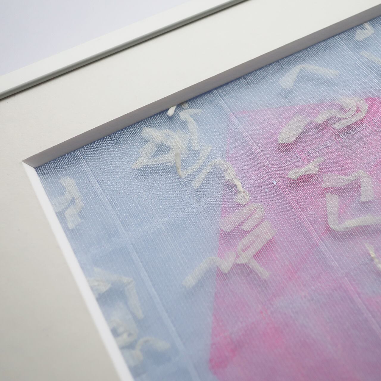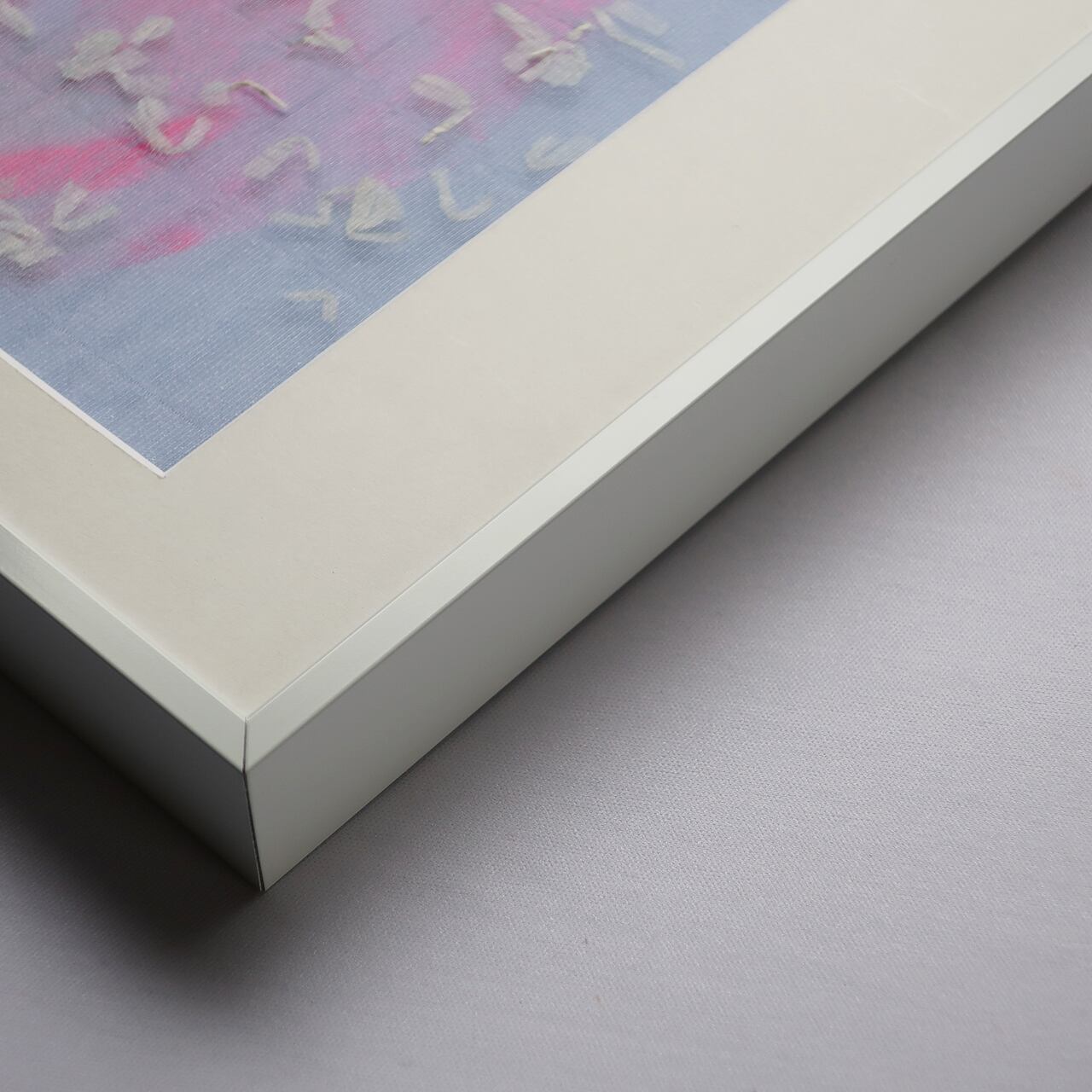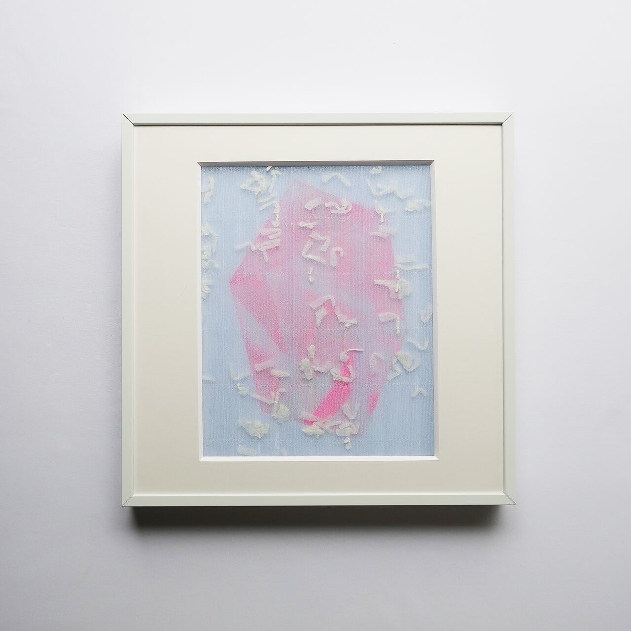 上村さんのドローイング作品にPOTTENさんのオリジナルの生地を重ねたものを額装しました。