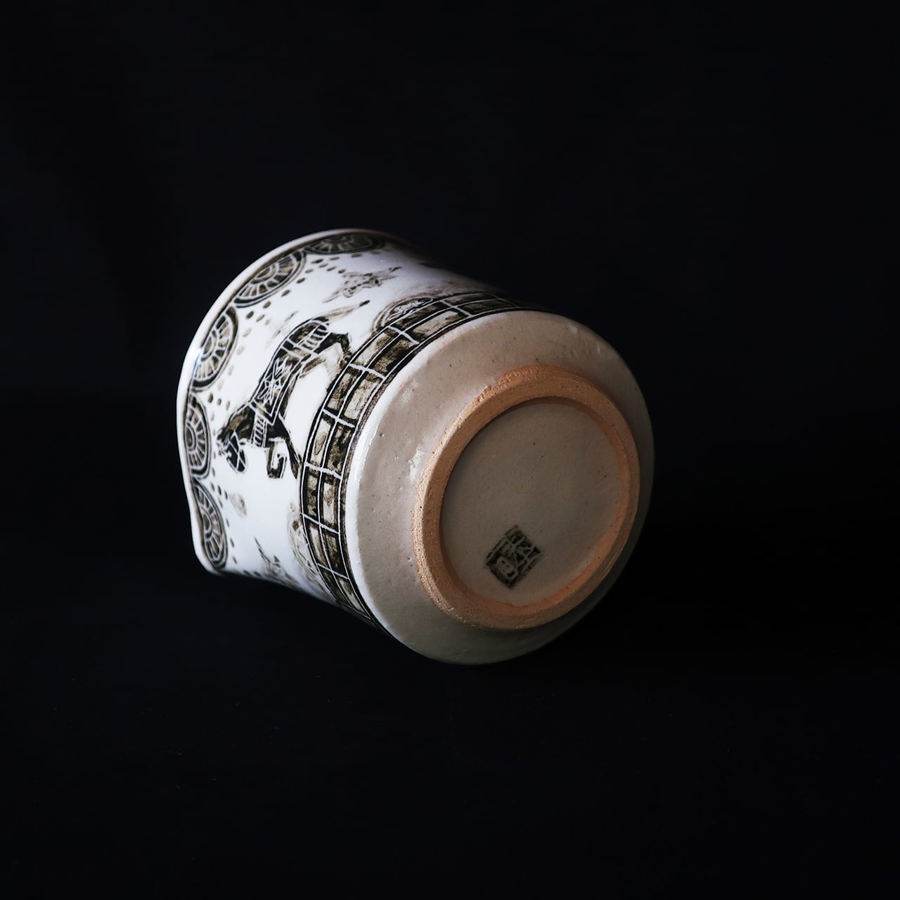 “掻き落とし”という陶器の表面を削り、異なる色を出して模様にする技法を使われています。