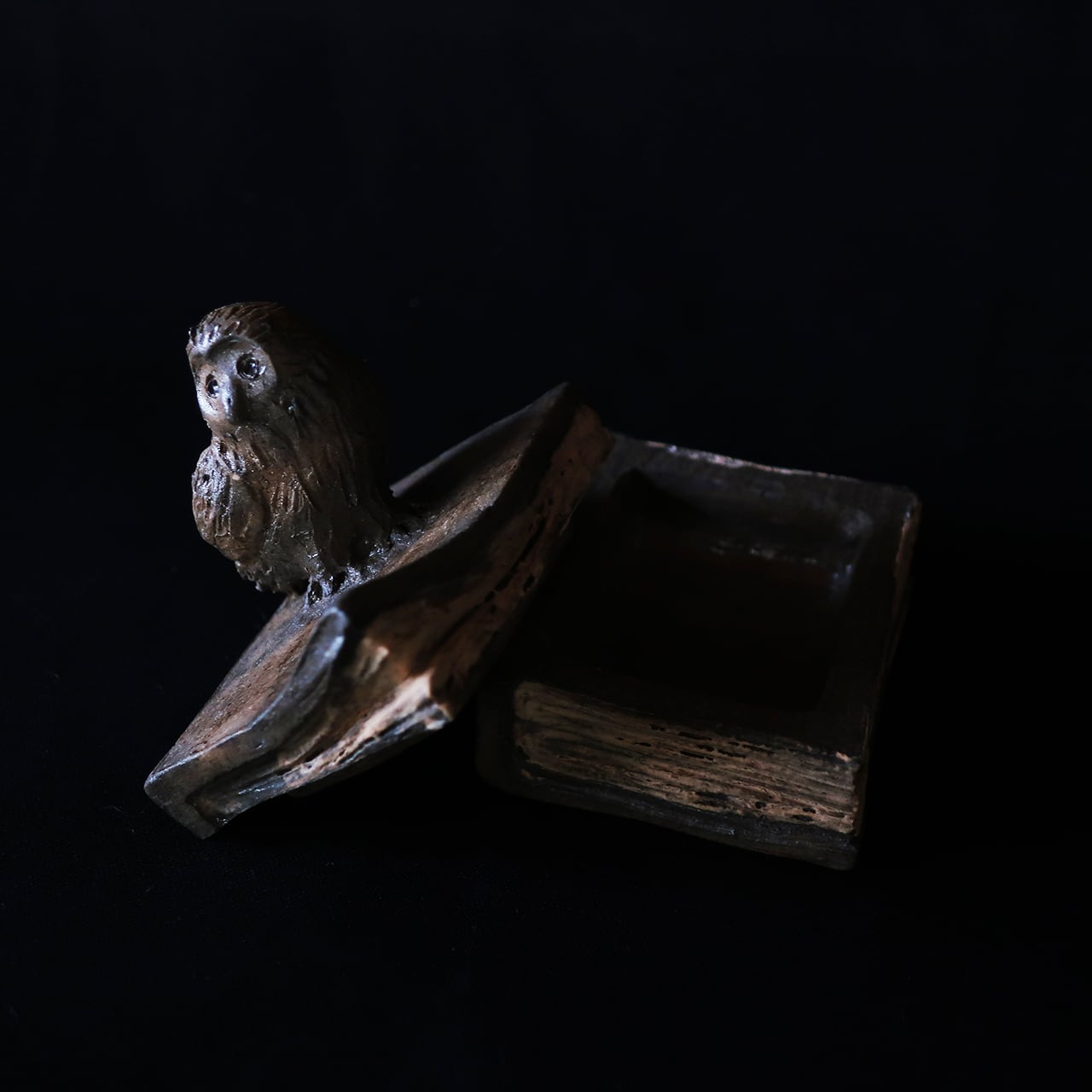 “知恵”の象徴でもあるフクロウがモチーフとなった蓋物作品です。