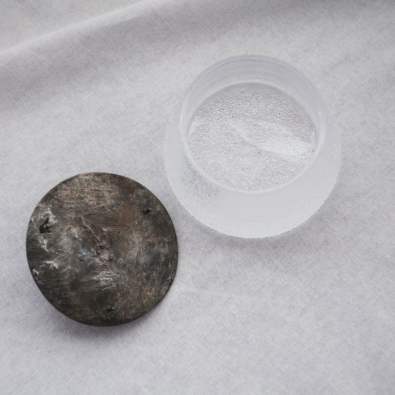 ガラスに乳香の天然樹脂をころりと入れて、日々、2,3滴の精油を垂らして馴染ませ、空間に香りを漂わせます。