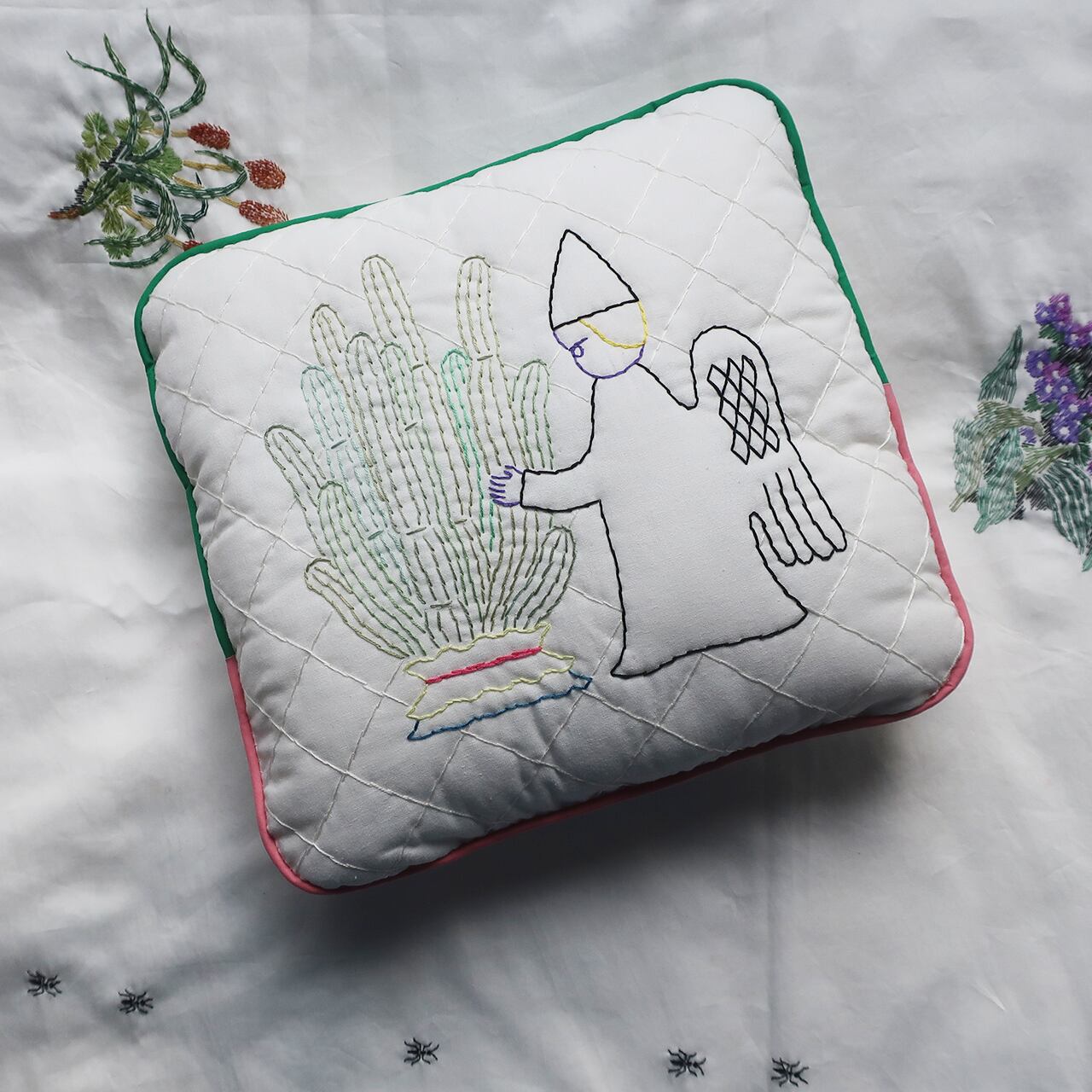 刺繍(ときどき色鉛筆)を用いて素朴でロマンチックな絵を描いています。