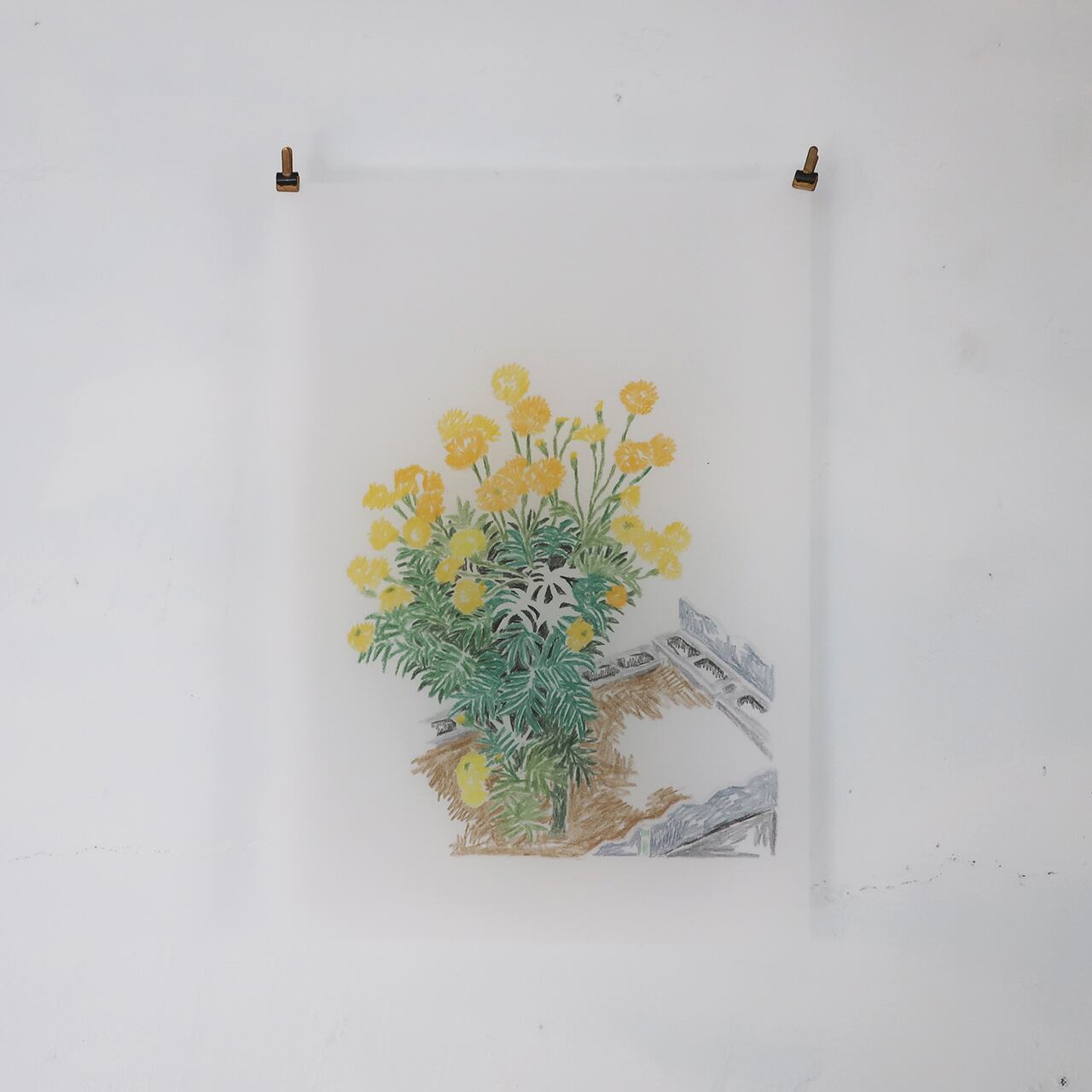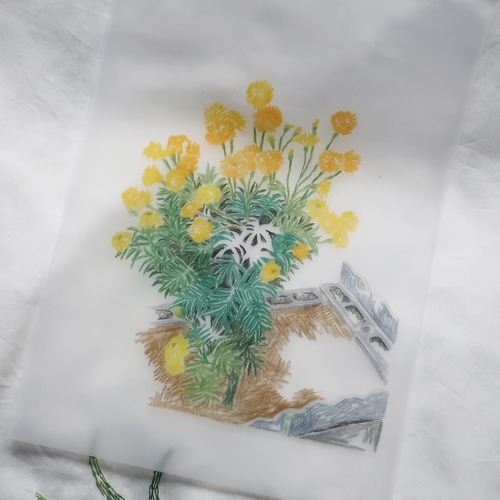 刺繍(ときどき色鉛筆)を用いて素朴でロマンチックな絵を描いています。