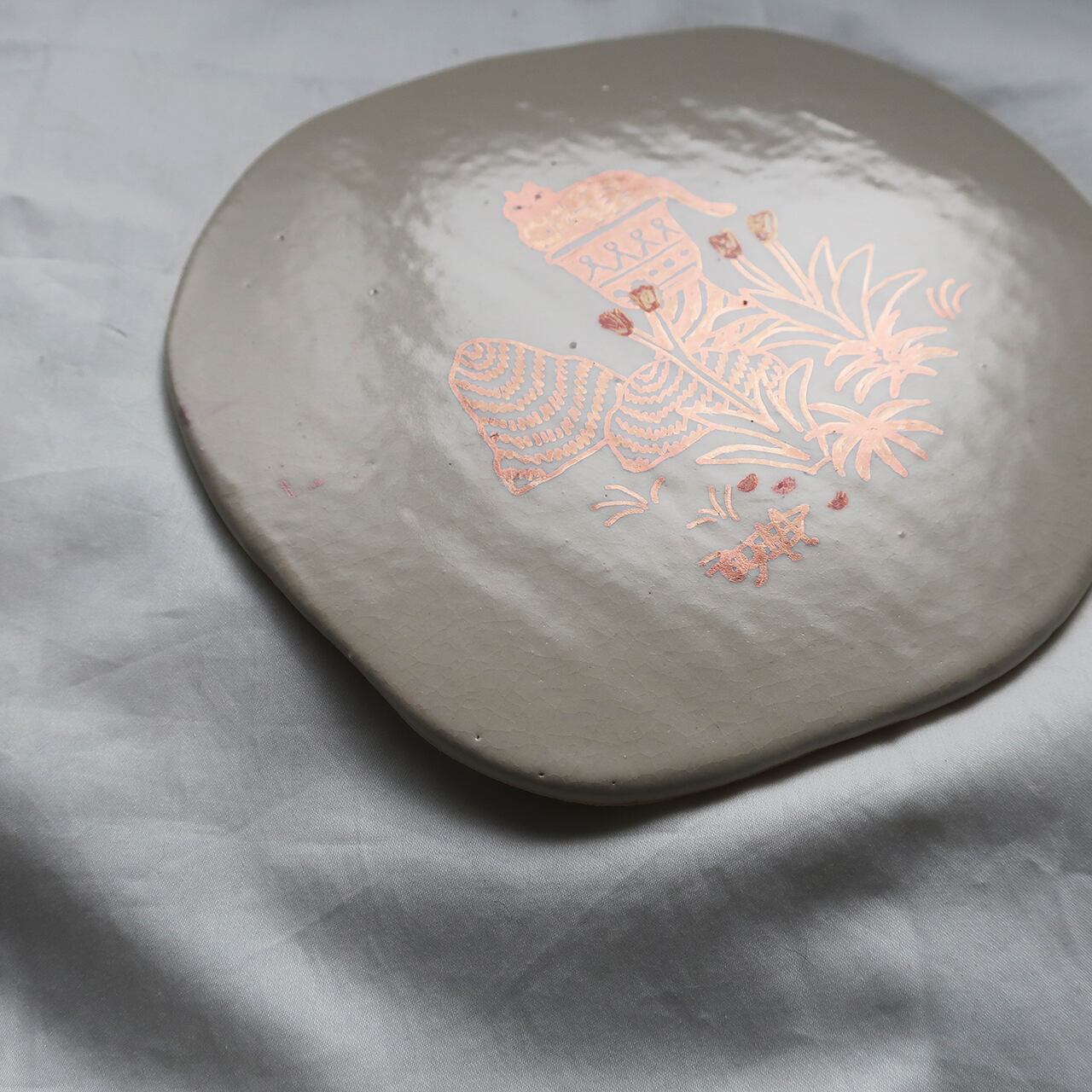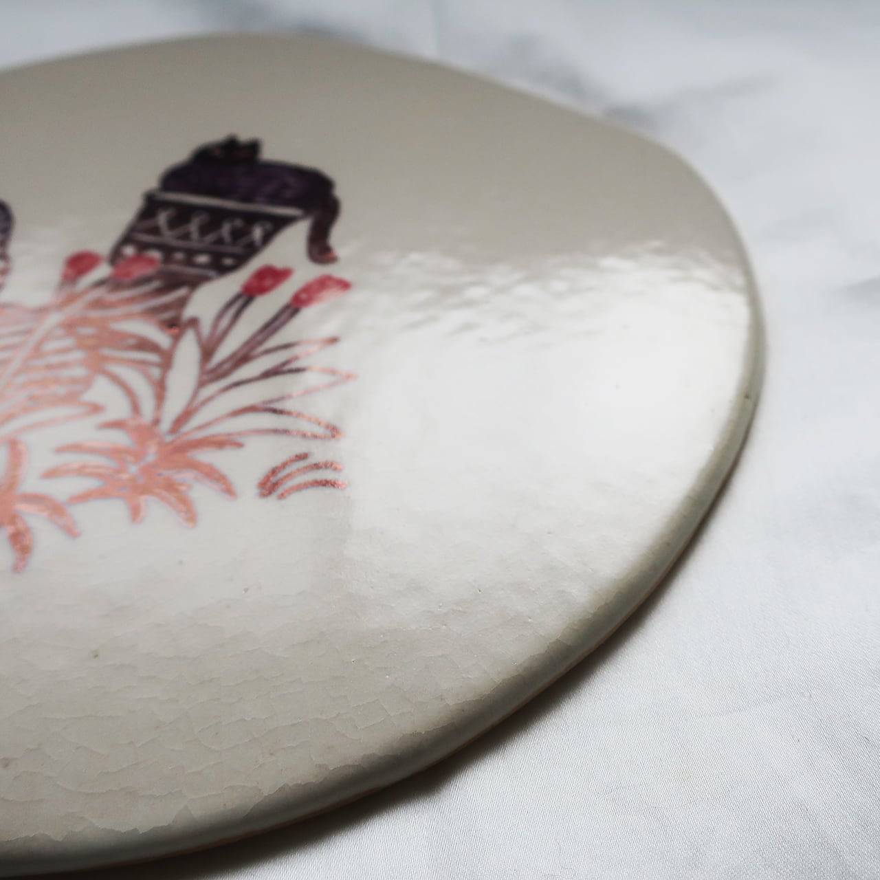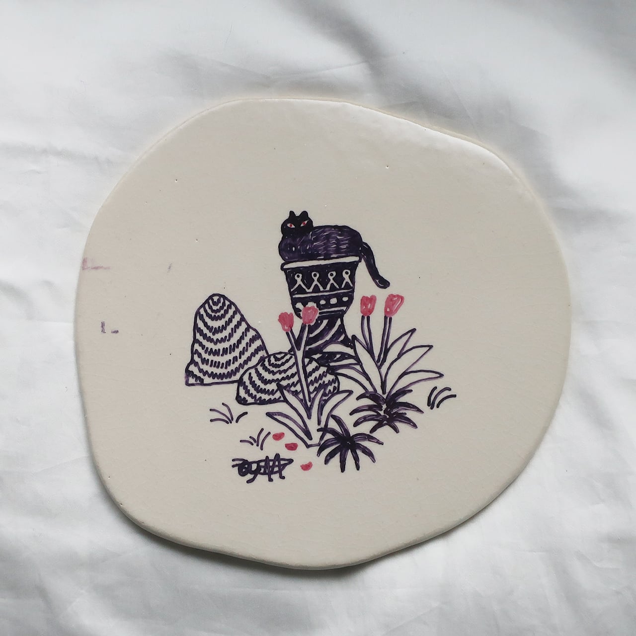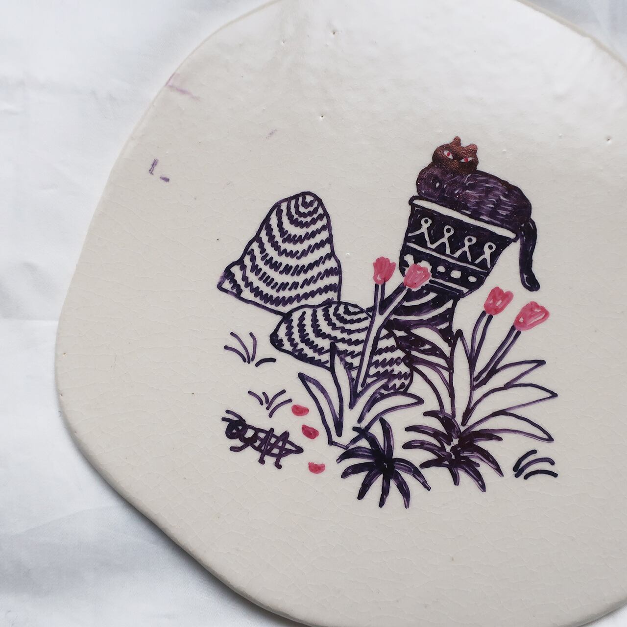 pottery u3 さんの陶器に奥見さんが直接絵付けしたコラボレーション 作品です。