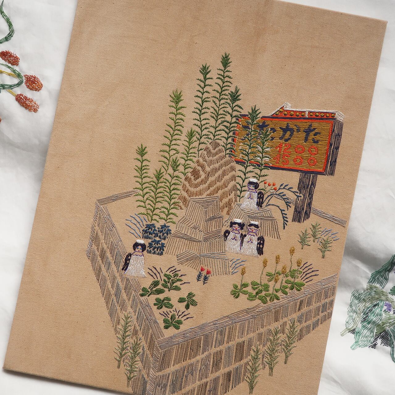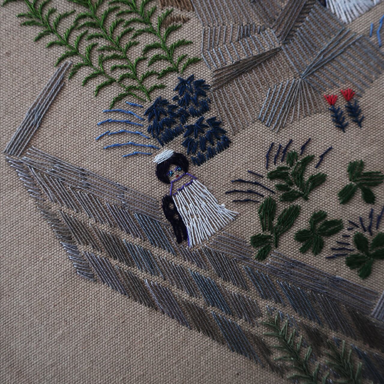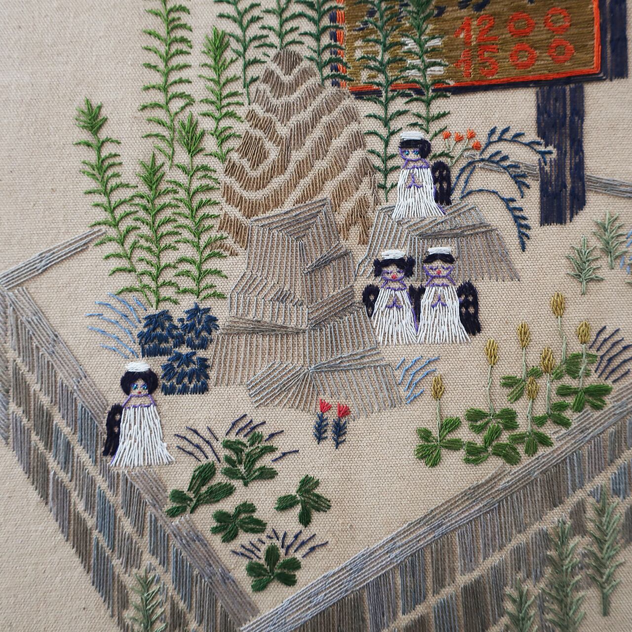 個展「うたかたの地(2023)」の際の刺繍作品。