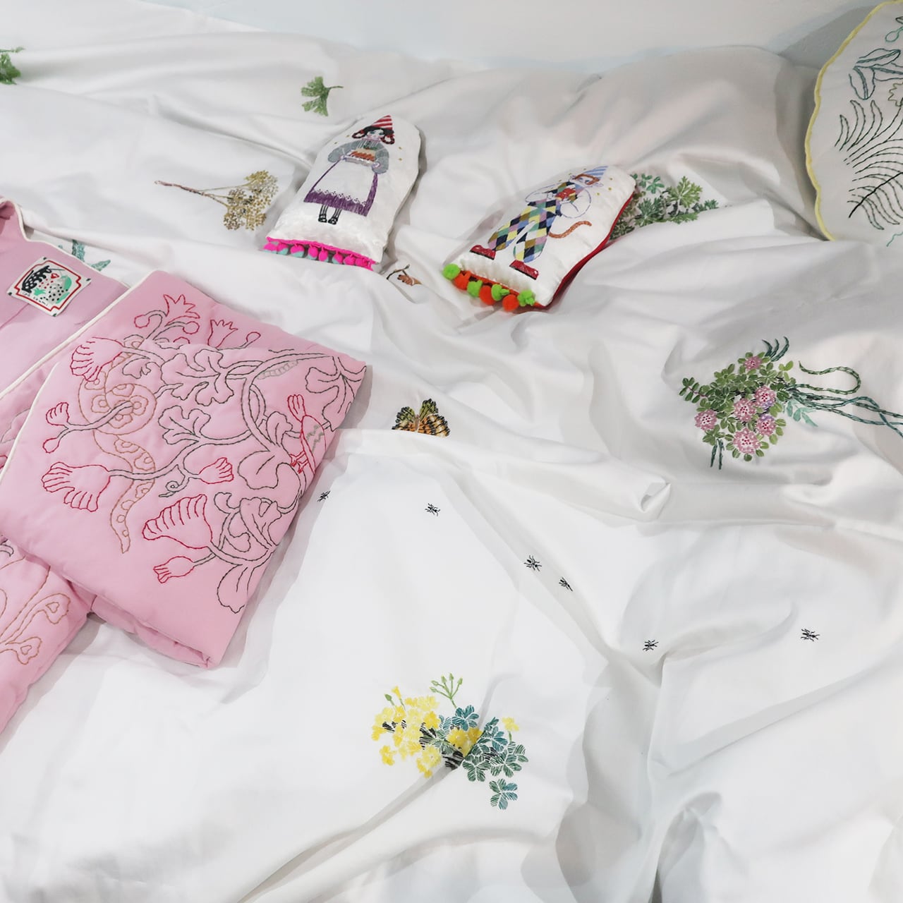 刺繍(ときどき色鉛筆)を用いて素朴でロマンチックな絵を描いています。