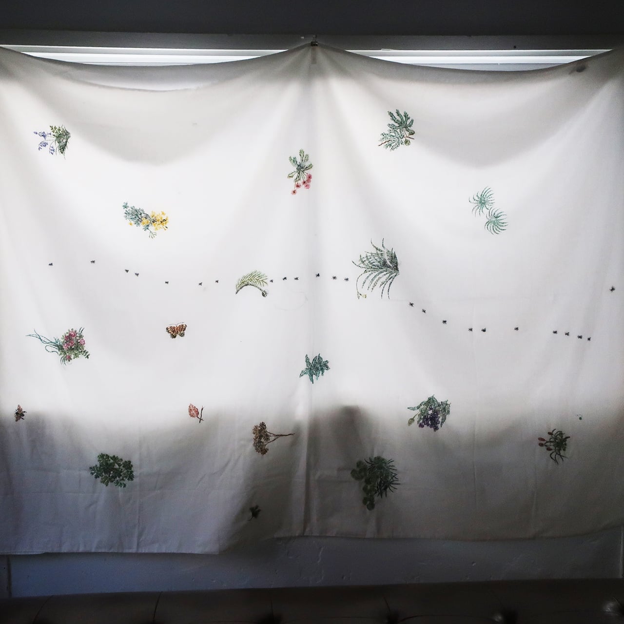 散歩の途中に見かけた道端の植物たちを手刺繍しました。