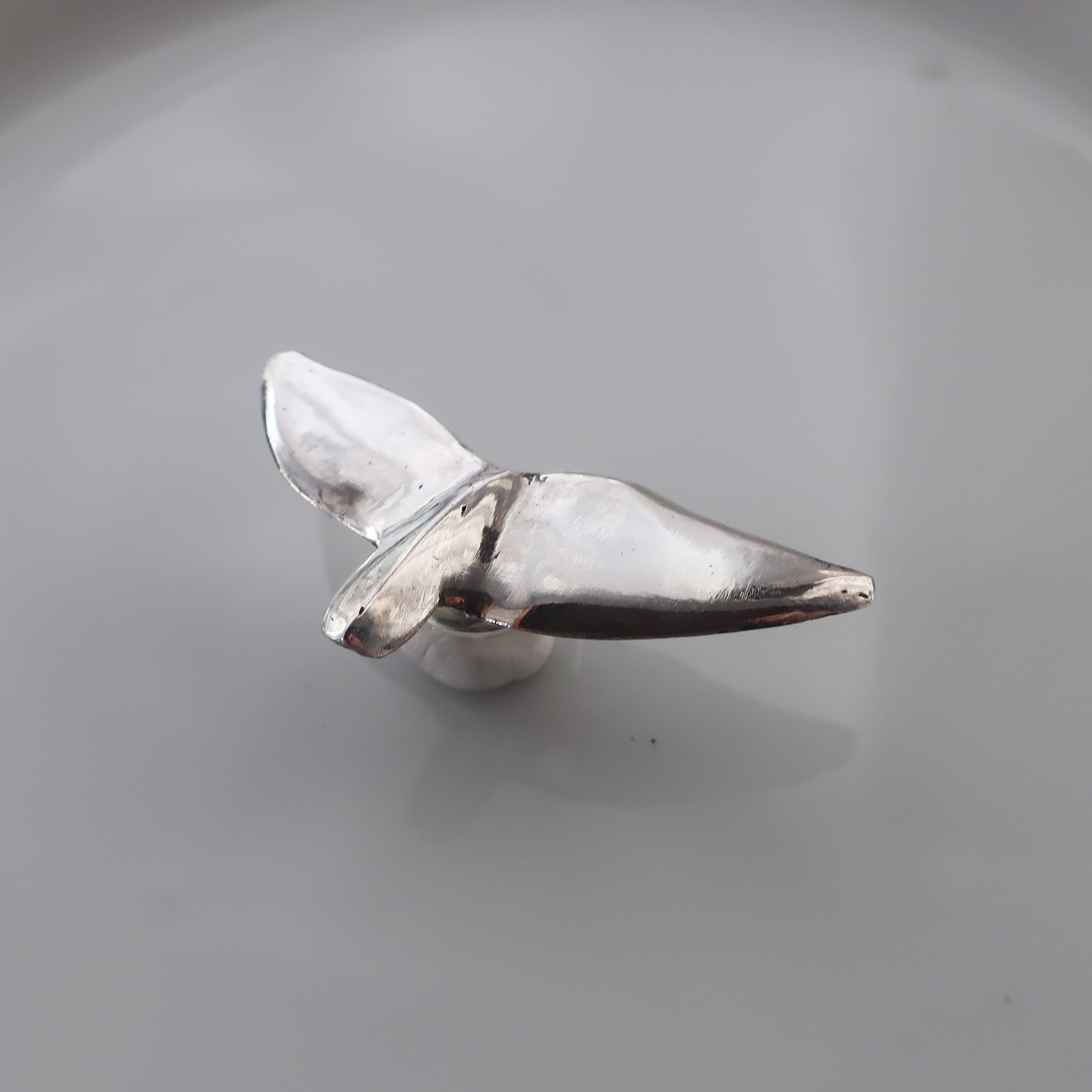 本展に合わせて制作くださったクジラの尾びれをモチーフにしたピンブローチ。